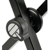 Présentation Les stands clavier "T-Rex" offrent aux claviéristes plus d'avantages que toutes autres gammes de stand "X" ! Au centre de chaque support en "T" se trouve le disque de verrouillage "DENTÉ". Ajustez facilement la hauteur de ce stand en desserrant le bouton central et en le déplaçant sur l'un des neuf niveaux de hauteur. Pour bloquer la hauteur c’est extrêmement simple, il faut simplement revisser le bouton central.