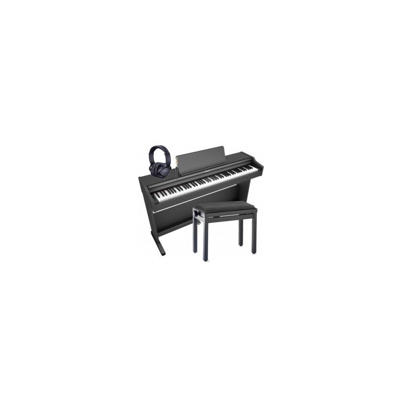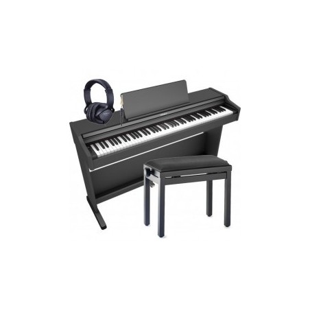 Pack comprenant un piano numérique ROLAND RP107B, une banquette piano réglable en hauteur assortie et un casque ROLAND RH5.