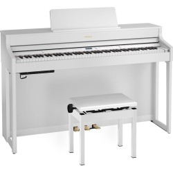Le piano numérique ROLAND HP-702 fournit avec une banquette assortie (modèle PB39 de la marque STAGG) et un casque ROLAND RH-5.