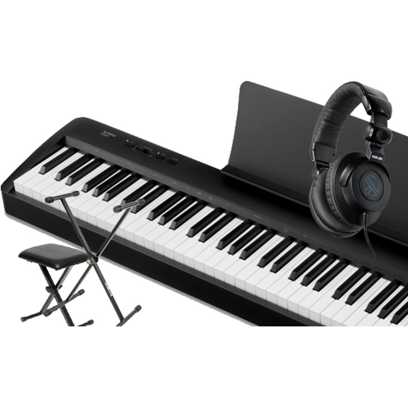 Pack piano comprenant un piano numérique KAWAI ES-60, un stand X (pied), une banquette (pliable) et un casque.